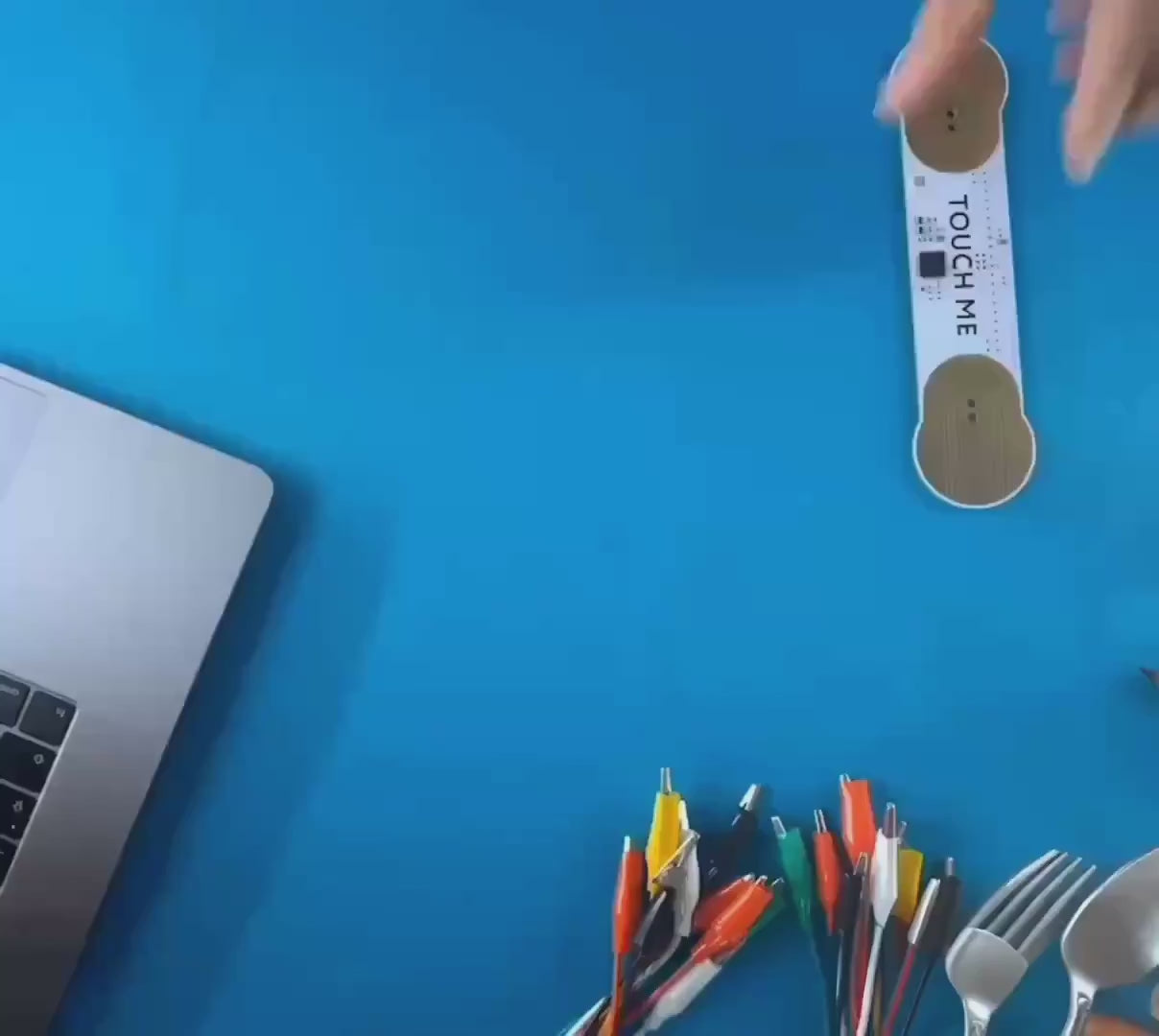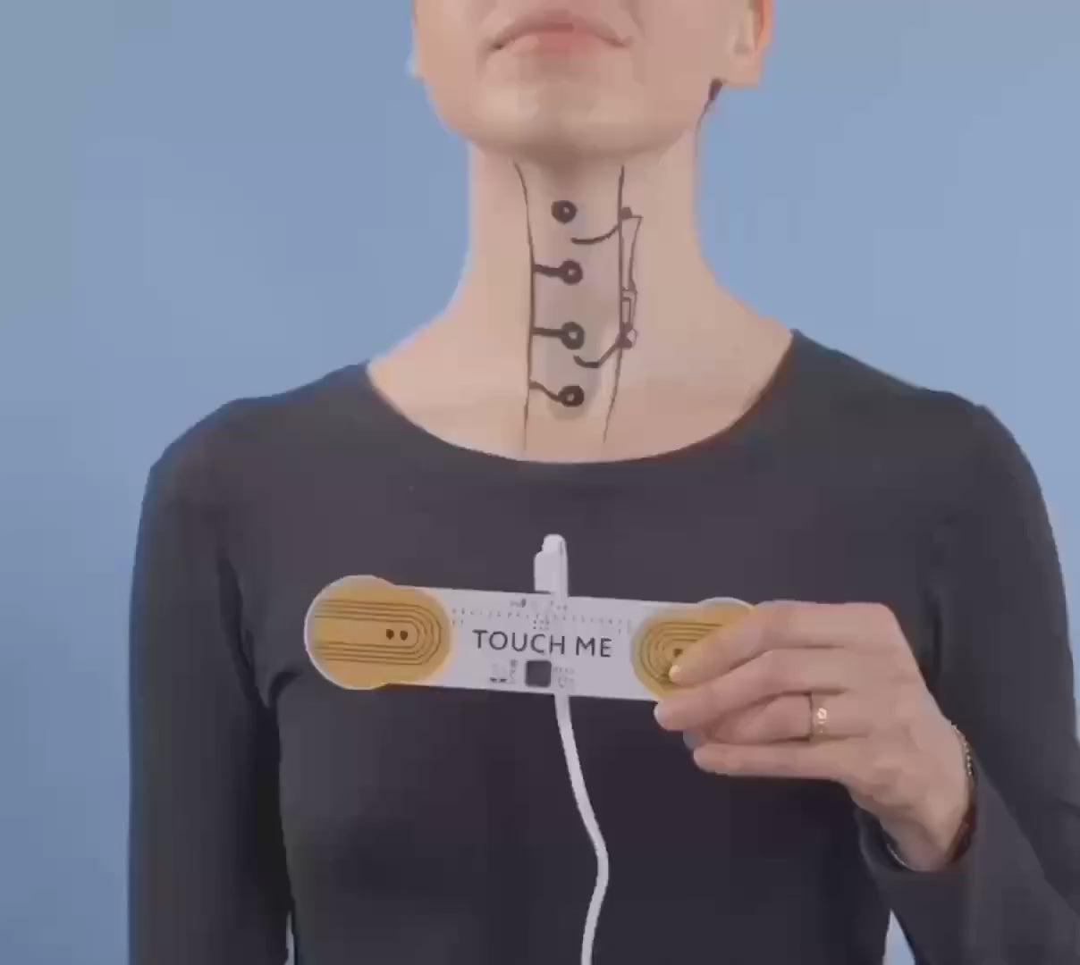 TouchMe détecte le courant électrique qui traverse ta peau et le transforme directement en sons musicaux. Lorsque la zone de contact et l’intensité changent, le son change aussi, ce qui te permet une expression musicale dynamique.
