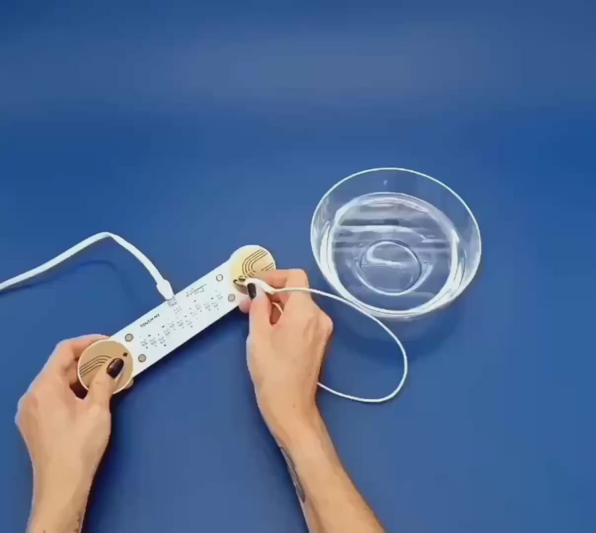 Joue seul ou à plusieurs. Fais de la musique en harmonie. Invite un ami à rejoindre le fun en tenant une extrémité de l’appareil pour compléter le circuit. Maintenant, vous pouvez créer de la musique ensemble directement sur la peau de l’autre !
